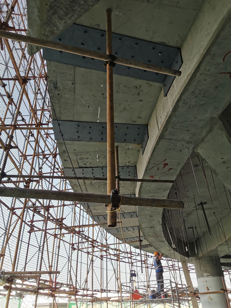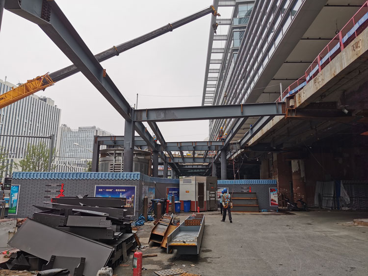 工程内容:地下二层~二层室内所有的结构加固工程,首层顶6~14轴南侧钢平台施工,及9层报告厅原结构柱拆除及加固